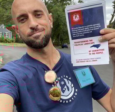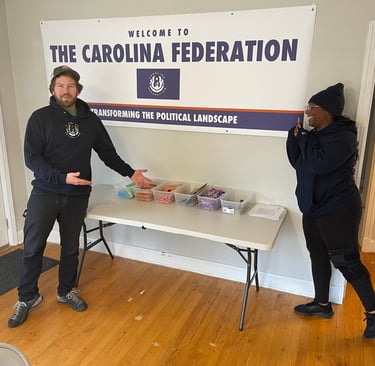 So in the middle of July of 2022, Ray Jarosz flew to Durham, North Carolina and lived in a Holiday Inn Express by himself, in order to create this program. Nobody from Galloway, Baker & Eurquhart was involved. Ray's first move was to lease a building at 1904 Guess Rd, where he created a company 'Headquarters' (that is still in use to this day). From there, he went about the business of creating a large-scale voter-contact program that went by the name of "Carolina Federation". A few weeks into this process, Herrick Sullivan flew in from Alaska, and by August 22nd door-knocking had officially begun.